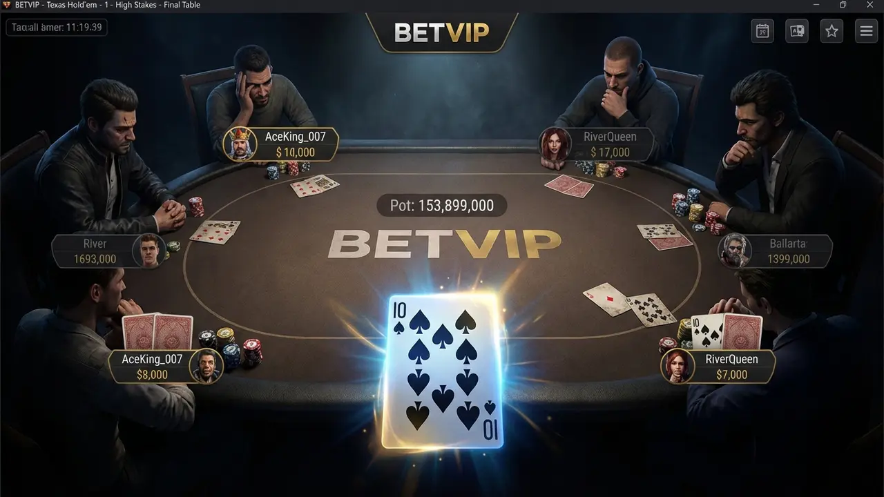 Bước vào sảnh Poker của Betvip là bạn đang bước vào một đấu trường quốc tế thực thụ. Đây không còn là trò may rủi, mà là cuộc chiến của tâm lý, của khả năng đọc vị đối thủ và quản lý vốn. Chúng tôi cung cấp đầy đủ các bàn chơi từ No-Limit Hold’em, Pot-Limit Omaha với các mức blind đa dạng. Đặc biệt, Betvip thường xuyên tổ chức các giải đấu (Tournament) với giải thưởng lên tới hàng tỷ đồng, mô phỏng theo mô hình của World Series of Poker (WSOP), là cơ hội để bạn so tài với những tay chơi Poker hàng đầu khu vực.