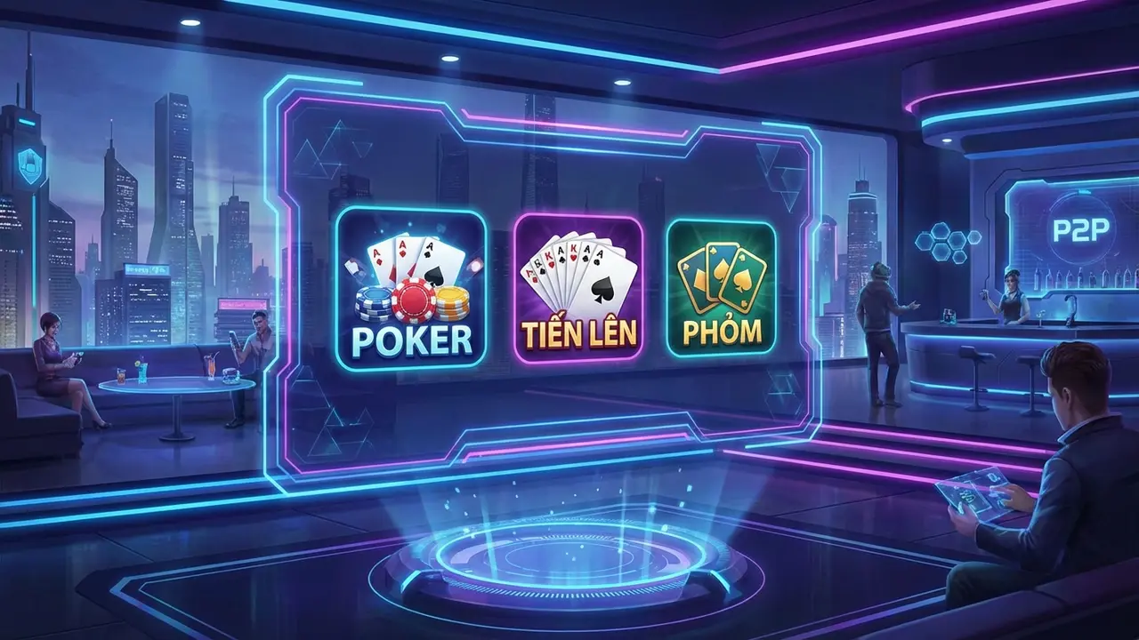 Bước vào sảnh game, điều đầu tiên gây ấn tượng mạnh mẽ chính là một không gian 3D được thiết kế theo phong cách futuristic, tối giản nhưng không kém phần sang trọng. Mọi chi tiết, từ hiệu ứng chia bài, chuyển động của quân bài cho đến biểu cảm của các avatar, đều được mô phỏng một cách mượt mà và chân thực đến khó tin. Giao diện được xây dựng trên nền tảng HTML5 thế hệ mới, đảm bảo tính đồng bộ tuyệt đối giữa phiên bản website trên máy tính và ứng dụng di động. Dù bạn đang sử dụng một chiếc PC màn hình lớn hay một chiếc smartphone nhỏ gọn, mọi thao tác đặt cược, tố, theo, bỏ bài… đều được thực hiện chỉ bằng một cú chạm hoặc click chuột. Bố cục bàn chơi được sắp xếp khoa học, không có các chi tiết thừa gây rối mắt, giúp người chơi tập trung hoàn toàn vào diễn biến ván đấu.