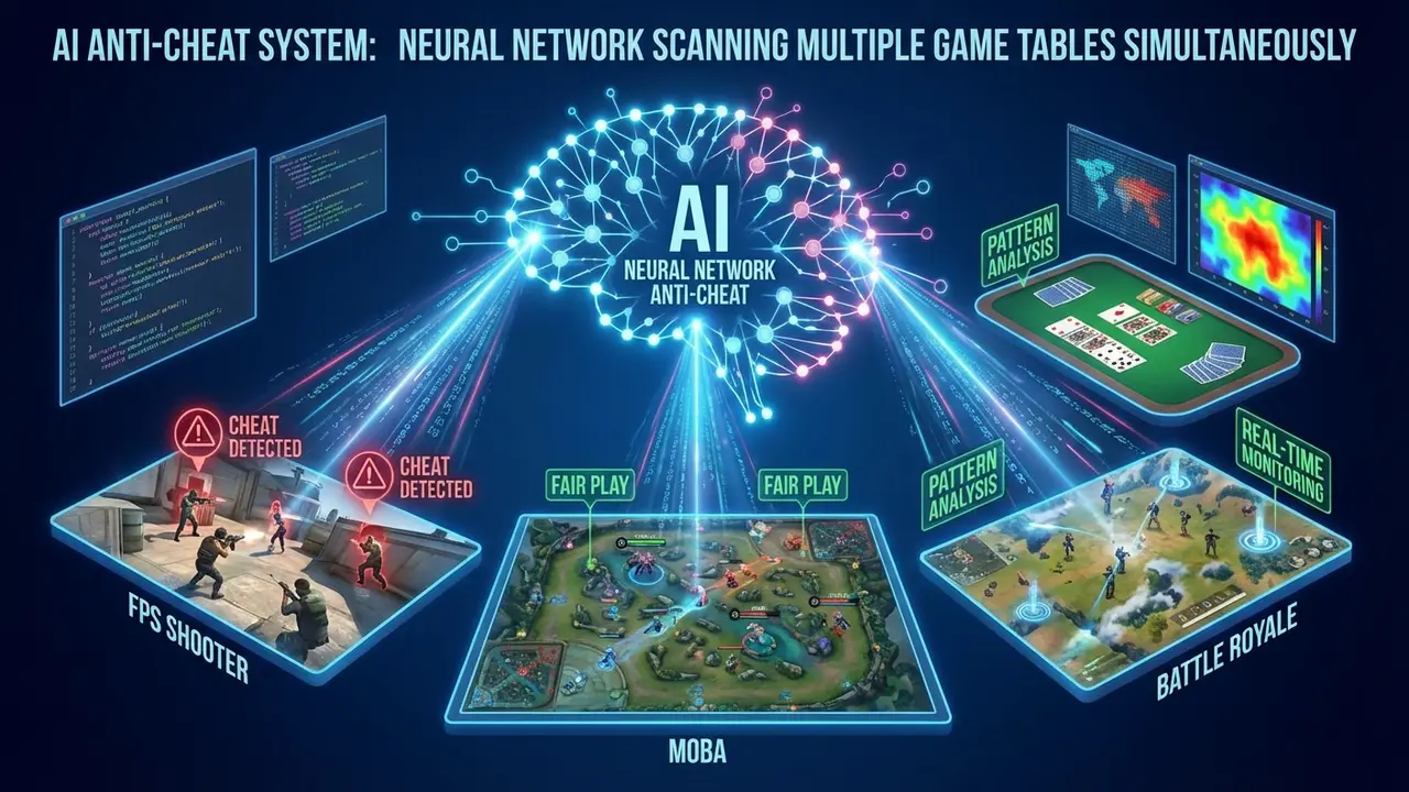 Hệ thống trí tuệ nhân tạo AI Aegis của Sam86 đang quét và phân tích các hành vi gian lận trong game bài