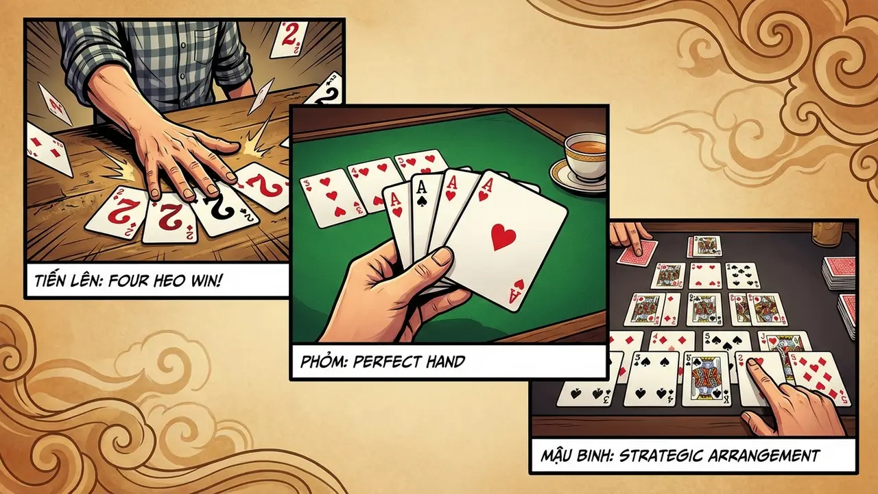 | Mậu Binh | Khó | Nhanh (90 giây xếp bài) | 5.000đ – 200.000đ/chi |